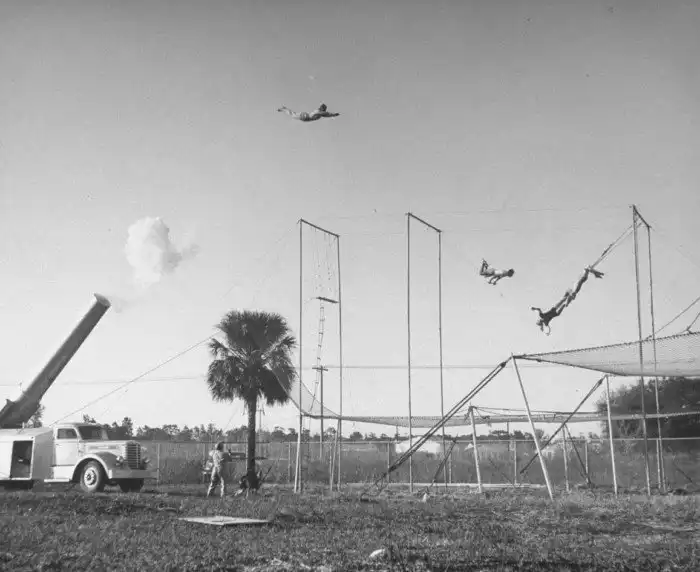 3. Тренировка артистов из цирковой династии людей-ядер семьи Заччини, 1948 год