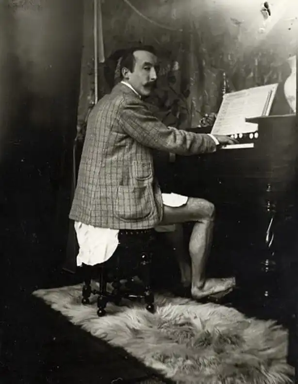 7. Поль Гоген без штанов играет на гармониуме в студии Альфонса Мухи, 1895 год