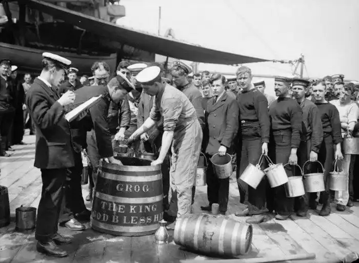 11. Британские моряки на борту "H.MS King George V в очереди на получение дневного рациона рома. Великобритания,1914-1918 … Раздача рома была упразднена только в 1970 году