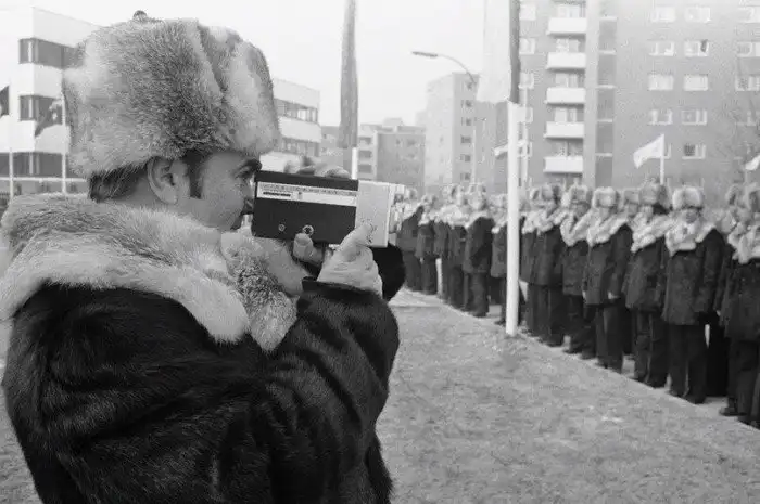 25. Сергей Павлов - министр спорта СССР, снимает на киноплёнку советскую команду. Олимпиада. Инсбрук. Австрия. 1976 г.