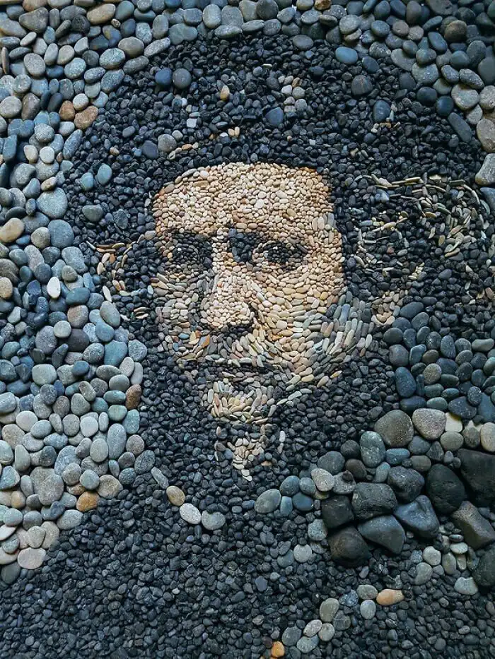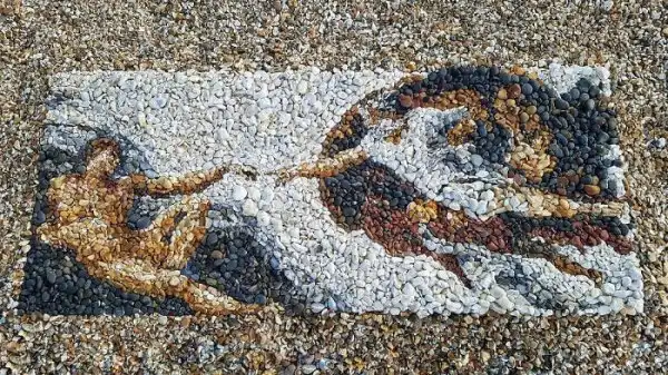 Музей на пляже: художник воссоздает известные картины с помощью разноцветной гальки