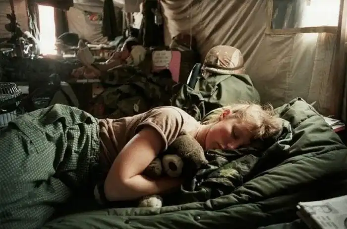 2. Медсестра Армии США Эми Стюарт и ее плюшевый медведь. Война в Персидском заливе, 1991 год