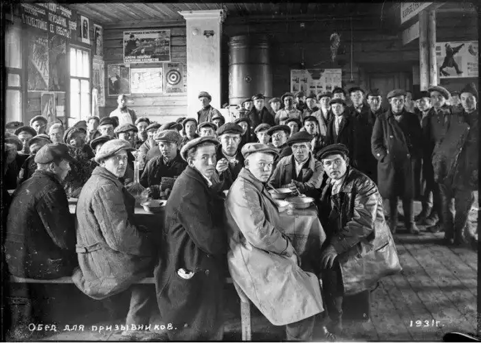 10. Обед для призывников. Фотограф Михаил Смодор. Ивановская область, город Галич. 1931 год