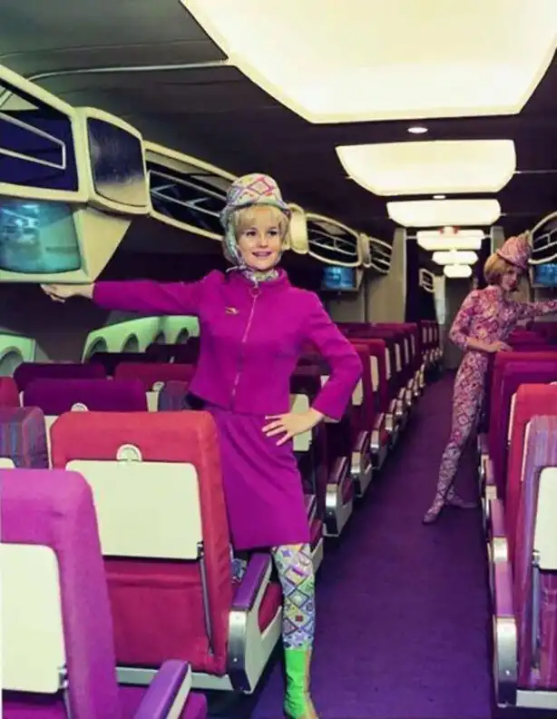 22. Стюардессы американской авиакомпании «Braniff International Airways» в психоделической униформе, разработанной итальянским модельером Эмилио Пуччи. 1966 г.