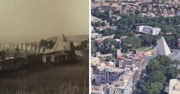 Как выглядела пирамида Цестия в Риме в 1750 году, и какая она сейчас