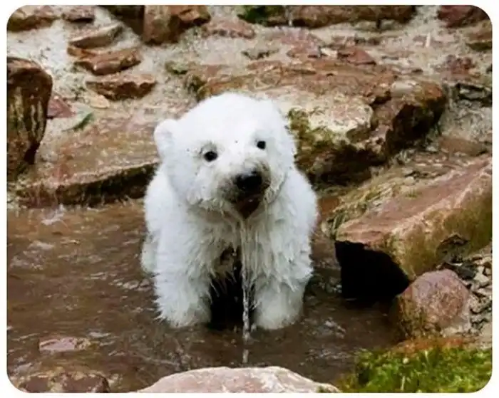 Белые медведи считаются одними из самых сильных и опасных хищников на планете. Но глядя на этого детеныша, поверить в это очень трудно. Он выглядит как настоящая плюшевая игрушка! Кажется, что от него точно нельзя ждать ничего плохого.