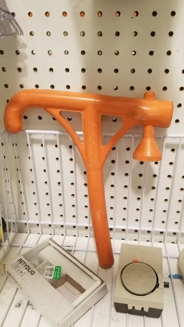 Ответ: Это держатель для бейсбольного мяча, который используется на тренировках новичков. Подставка под мяч тут перевёрнута вверх тормашками.