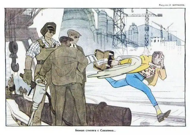 «Бежал стиляга с Сахалина». Кaрикатура Е. Шукаева. СССР. 1960-е.