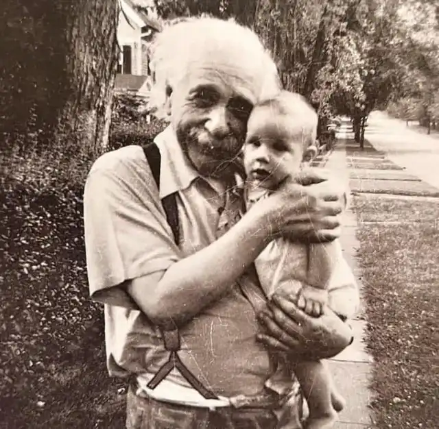 Альберт Эйнштейн с маленьким соседом, 1951 год.