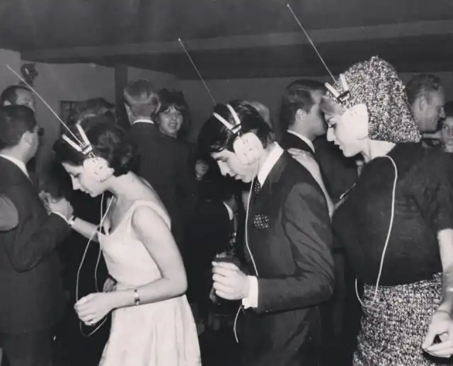 Hoчной клуб в Пaриже, где каждый сам выбирает под какую музыку танцевать, настраивая её в своих наушниках, 1963 год.