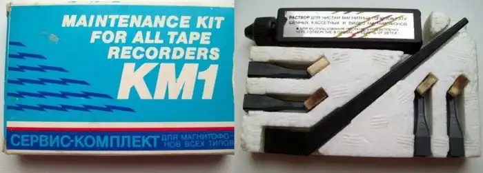 Тут уж пришлось всем сделать профилактику своих кассетных магнитофонов: если усилие подмотки недостаточно, то тонкую импортную пленку затягивало на прижимной ролик тонвала. Естественно, стали чаще чистить головки магнитофонов. И не говорите про чистящие кассеты, чистый спирт или вот такие наборы от 77 года: