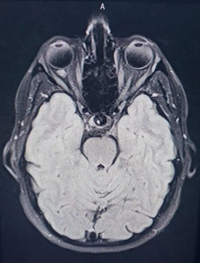 Скан головного мозга яеловека. Место схождения нервных пучков, идущих от глаз к мозгу, напоминает третий глаз