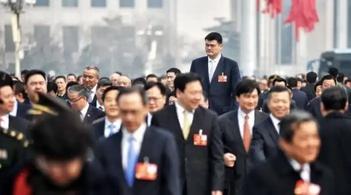 Китайский баскетболист Яо Мин в толпе соотечественников