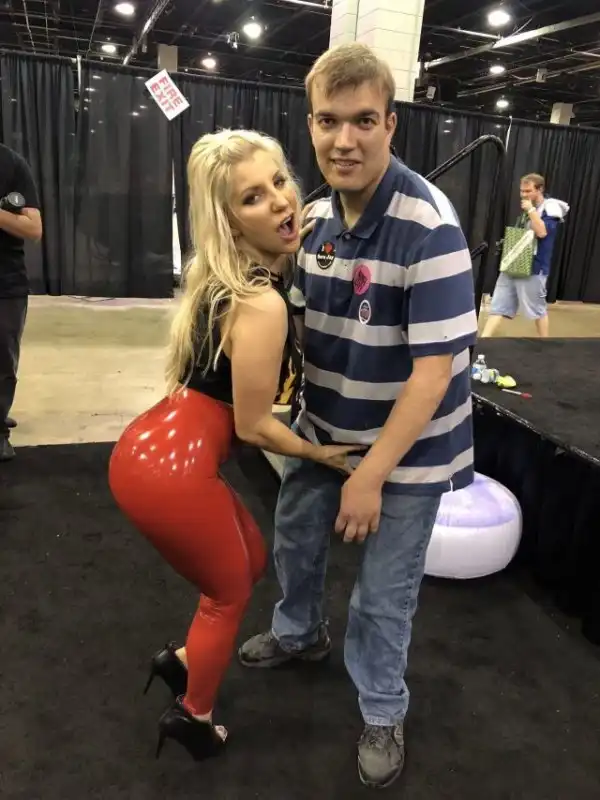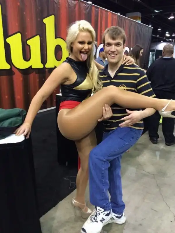 Этот киноман прошел на мероприятие полное мифических актрис и не упустил возможности сфотографироваться с каждой из них.