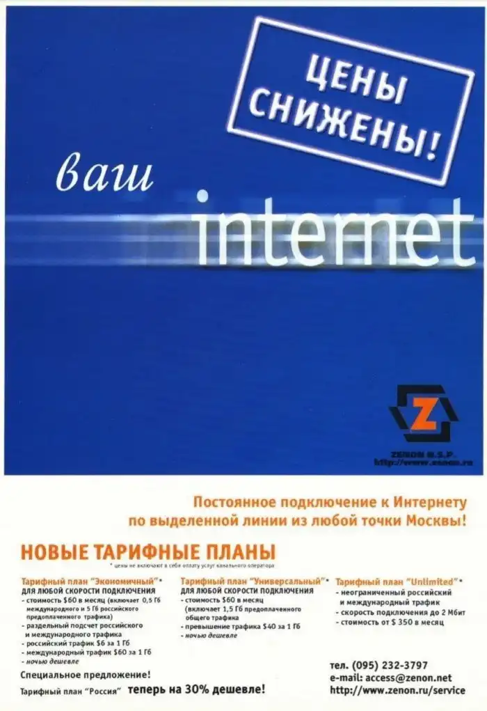 2000 год, $350 в месяц за безлимитный трафик и скорость 2 Мбит