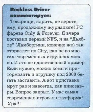 Точка в споре консолехолопов и ПК-бояр была поставлена ещё в 2000 году в журнале "Навигатор игрового мира"