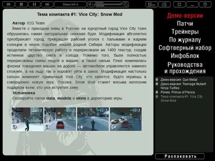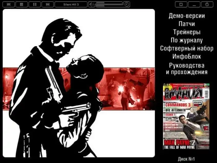 Если помните, в комплекте с журналами ещё были диски с патчами, демо-версиями, модами, музыкой из игр. Меню DVD из номера "Игромании" за 2003 год