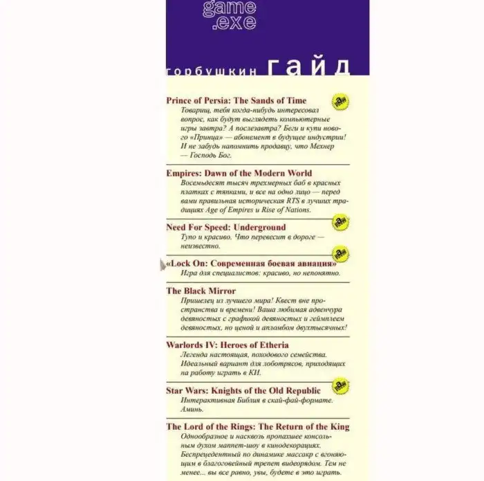Когда-то такая заметка в журнале действительно была полезна (хотя бы для тех, у кого в те стародавние времена был интернет). "Навигатор игрового мира", 1999 год