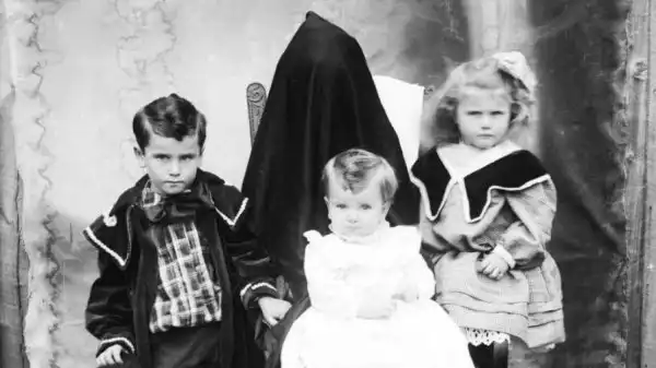 Вообще это подразумевалось как снимок детей, но фотографии тогда делались долго, нужно было ждать, а маленькие детишки не могли усидеть ровно на месте. Поэтому с ними были их матери, которых маскировали подобным жутким образом.