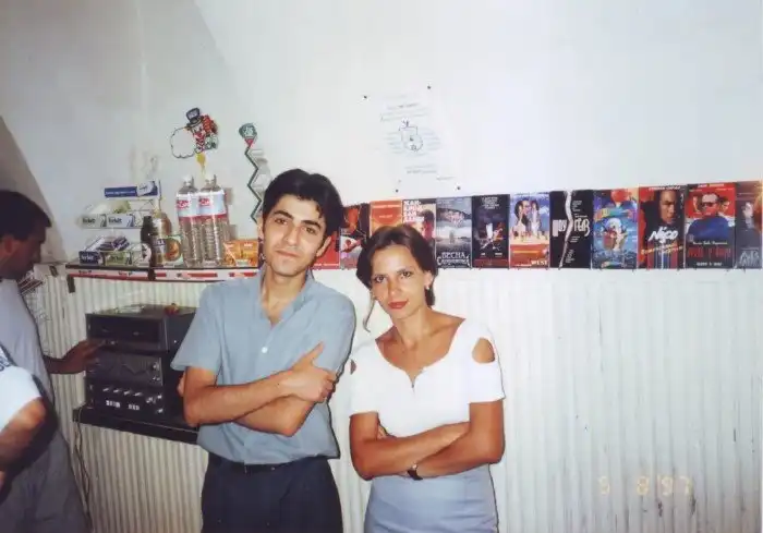 7. Сотрудники видеосалона на фоне видеокассет-VHS, 1997 год