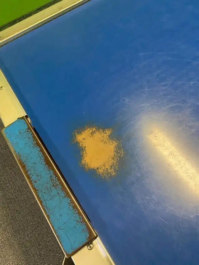 3. Асфальт сохранил сдеды маленьких ножек у качелей на детской площадке