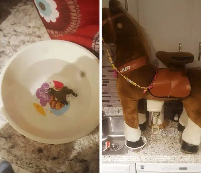 "Перед сном моя дочь положила в воду игрушку пони, которая за ночь должна увеличиться в размере. Я тайком заменила ее на это"