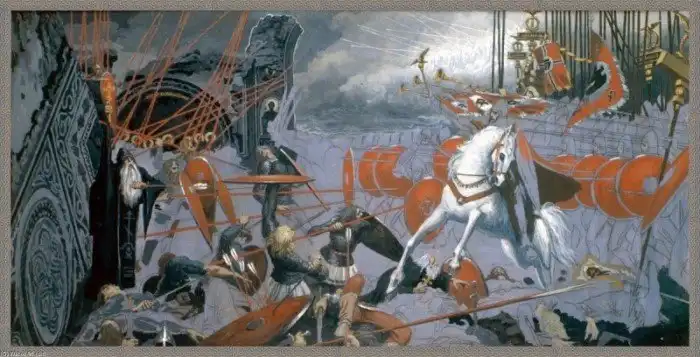 Художник изучал древние легенды, былины, предания. Он узнал, что была могучая страна Гиперборея, народ которой и стал прародителем большинства древних народов и культур на земле, и эта древняя страна находилась на территории теперешней России.