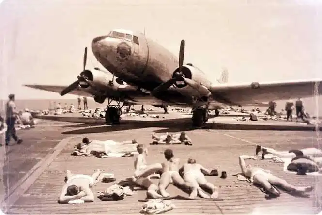 34. Матросы загорают на палубе американского авианосца, 1952 год