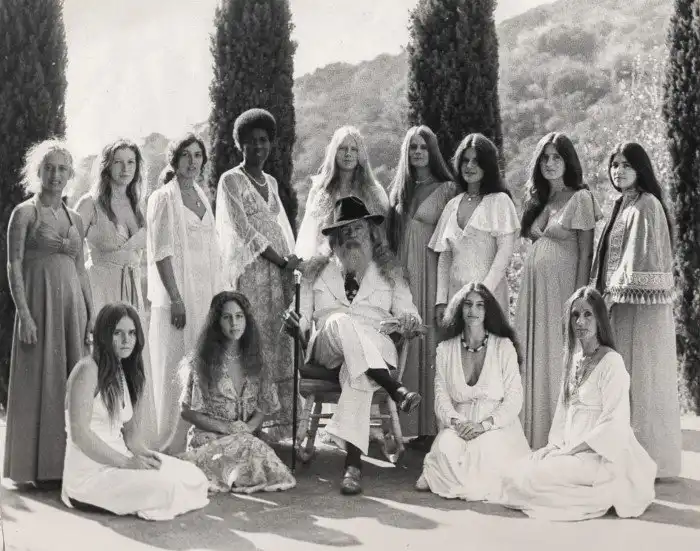 36. Отец Йод (он же Джеймс Эдвард Бейкер) и его жены в коммуне Исходной семьи, Лос-Анджелес, Калифорния, 1972 год