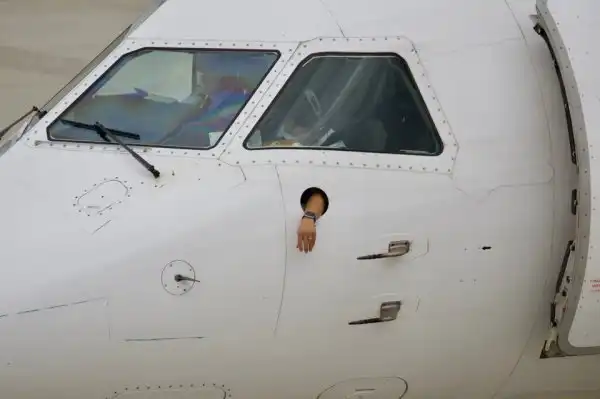 В кабине этого самолёта Saab есть отверстие для руки пилота