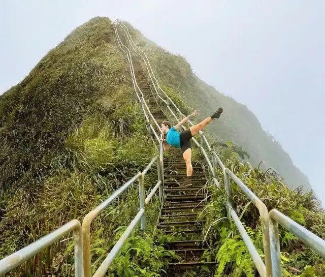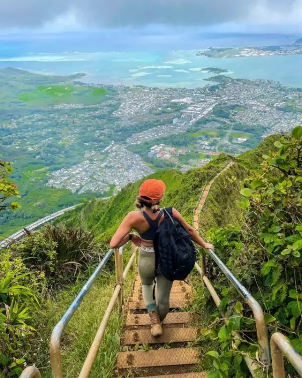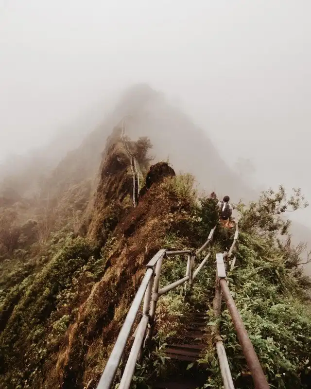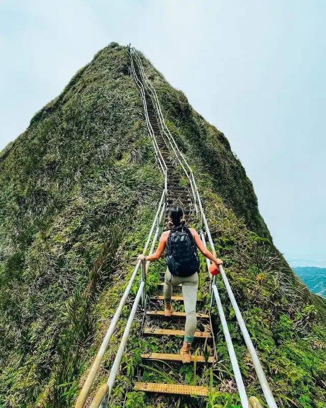 Крутой подъем на 2480 футов включает 3922 узкие ступеньки, встроенные в горный хребет Кулау на Оаху, и позволяет туристам почувствовать, что они буквально витают в облаках.