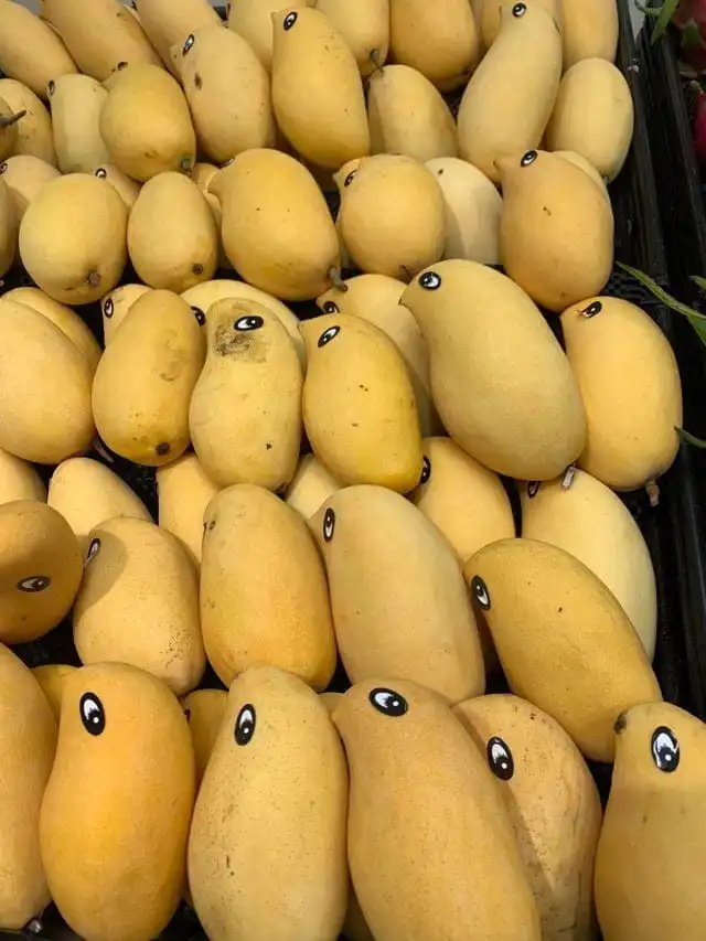 В местном супермаркете на манго приклеивают наклейки, чтобы они стали похожи на птичек