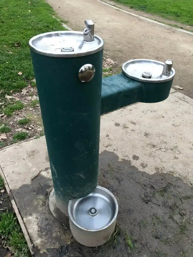 В этой уборной есть ступенька, чтобы дети могли достать до умывальника