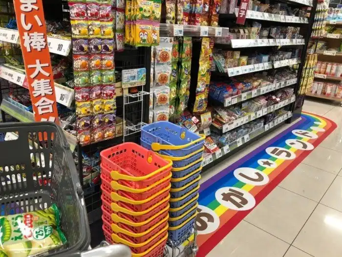 С таким краном дети точно не забудут помыть руки.Маленькие продуктовые корзинки специально для детей у прилавка со сладостями