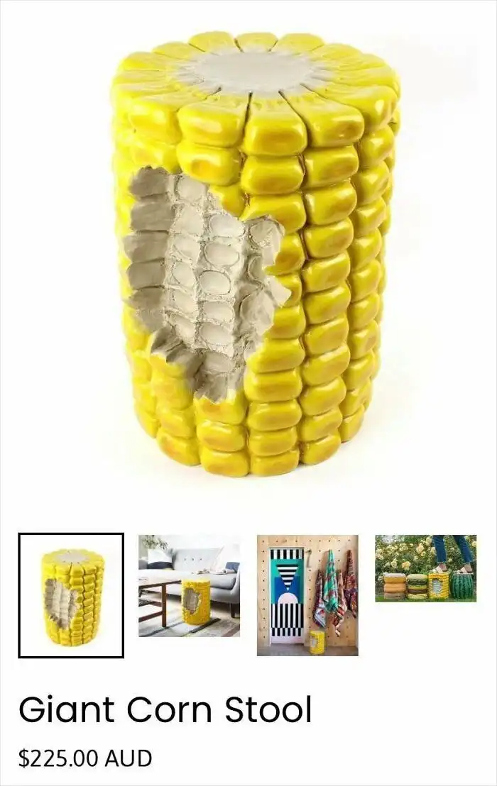 Табурет в виде гигантского кукурузного початка, между «зёрнышками» которого будет скапливаться вся пыль и грязь
