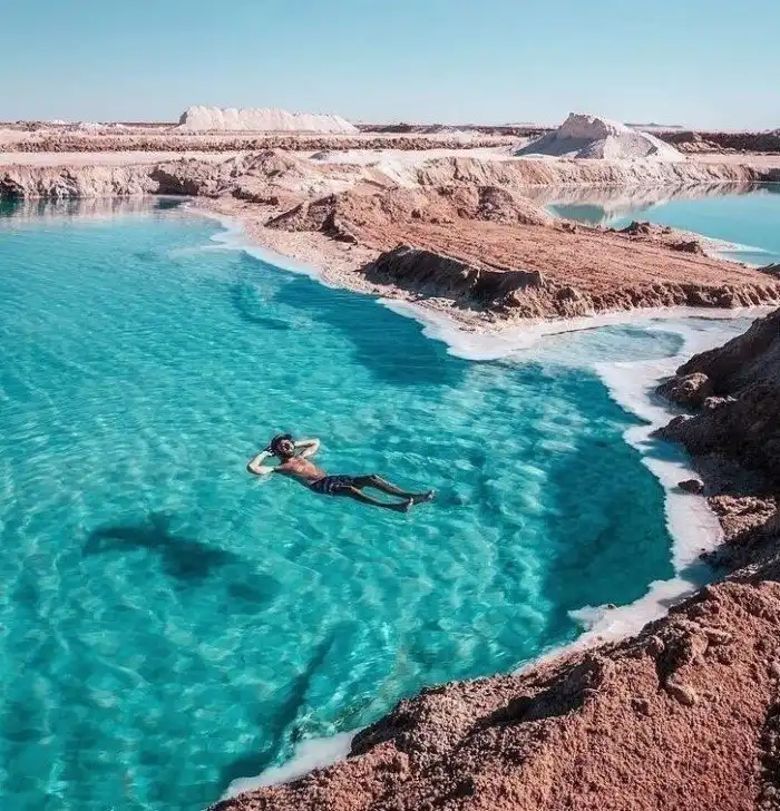 Соленое озеро посреди пустыни, Оазис Сива, Египет. Содержание соли такое высокое, что кажется, что вы левитируете