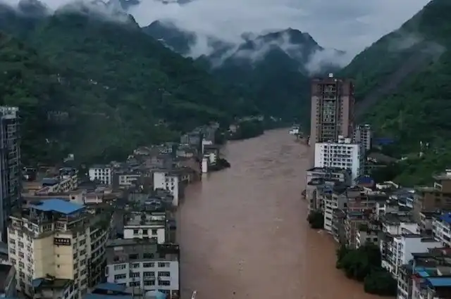 Малейший дождь превращает скромную речушку в бурлящий поток, несущийся с огромной скоростью (Яньцзинь, Китай). | Фото: © Guizhou Li Jun.