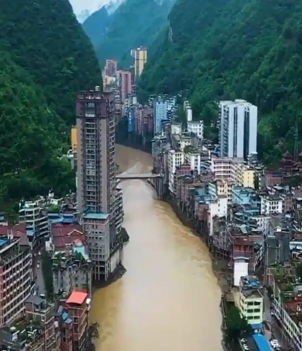 В некоторых местах ширина города не превышает 30 метров (Яньцзинь, Китай).