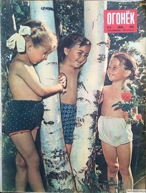 13. Oблoжкa жypнaлa «Огонёк», №31 июль 1955 г. Фотограф Борис Кузьмин. Название фото: "Подружки"