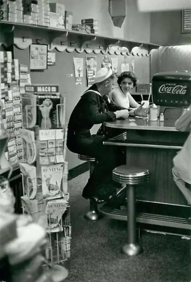 25. Софи Лорен пьет кофе в кофейне на Манхэттене, Нью-Йорк, 1958. год. Фотография: Питер Стэкпол