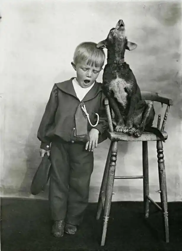 27. Маленький мальчик с любимой собакой поет в унисон. Австралия. 1939 год