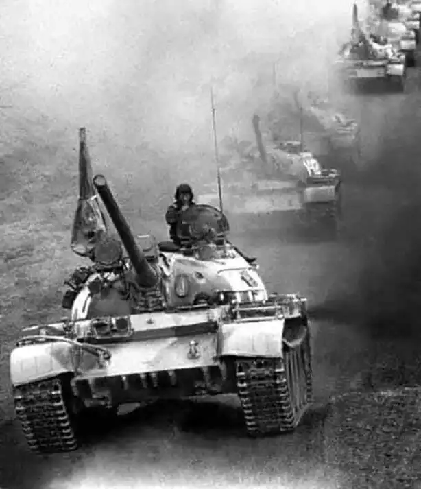 5. Танк Т-55 с десантом морских пехотинцев из состава танкового батальона во время учений 810-й бригады морской пехоты Черноморского флота; 1980-й год. На заднем фоне большой десантный корабль пр.1171 "Николай Фильченков"