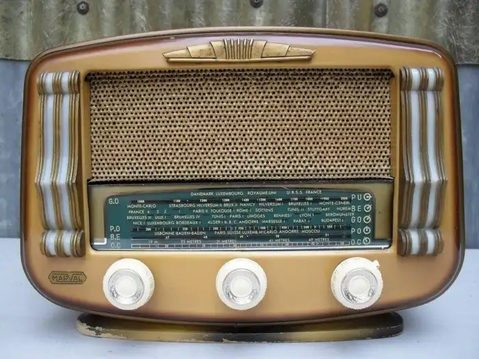 Что из себя представляет ламповый радиоприемник: шасси с деталями, на которых собрана вся электронная схема, кнопки включения и переключения диапазонов, ручки регулировки звука и настройки на радиостанции, несколько динамиков.