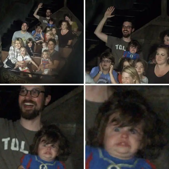 "Мы с мамой согласились составить компанию моему сыну в первой в его жизни поездке на американских горках. Все прошло хорошо"