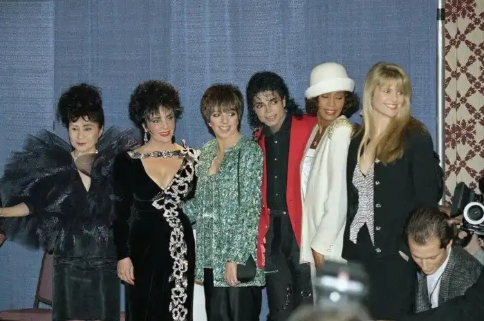 9. Йоко Оно, Элизабет Тейлор, Лайза Миннелли, Майкл Джексон, Уитни Хьюстон и Кристи Бринкли на United Negro College Fund, 10 марта 1988 года