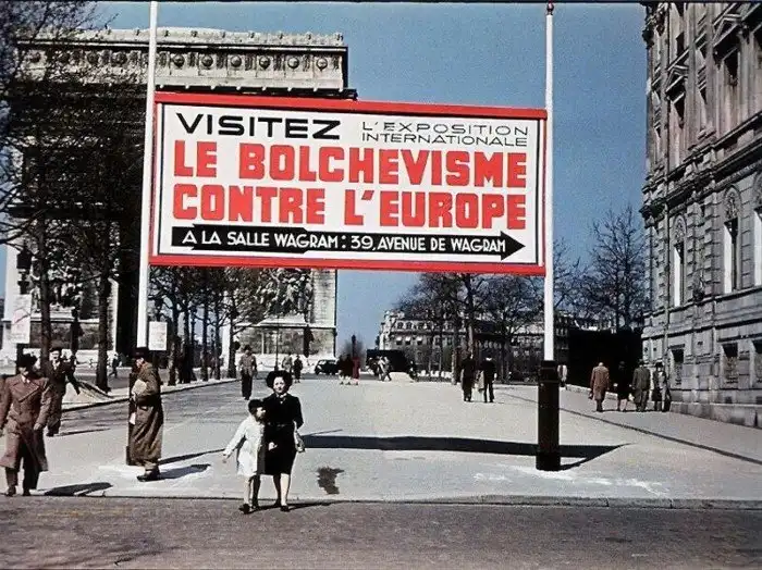 13. Афиша выставки у Триумфальной арки на углу улиц Тильзит и Елисейских полей. "Большевизм против Европы". Париж. Период оккупации. 1940-е