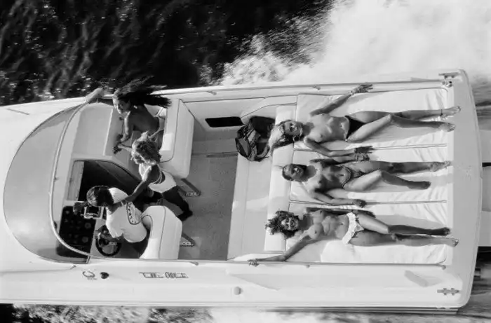 29. Светская львица Жаклин Вейссьер с подругами на катере, Сен-Тропе, 1986 год