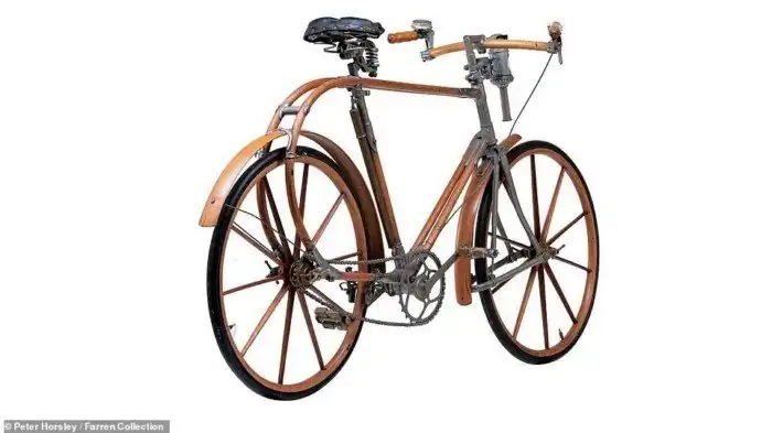 Редкий велосипед La Souplette, изготовленный в Париже в 1897 году. Это единственный пример велосипеда с деревянными колесами и передней подвеской из того времени.