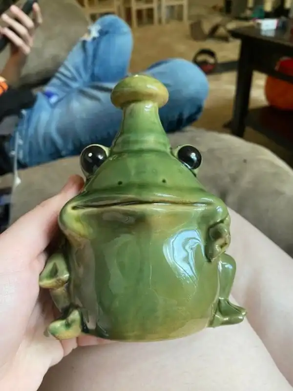 Что это за керамическая фигурка лягушки? У неё на дне есть дырочки и на верхней части тоже есть отверстие