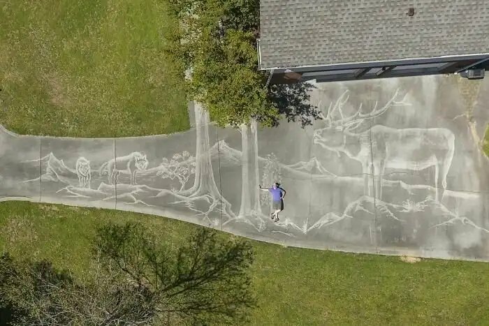 2. Эти цветы и птицы "нарисованы" с помощью мойки высокого давления